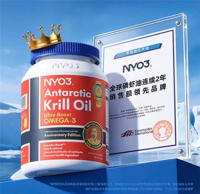市场数据同样有力:NYO3已连续5年位居中国线上磷虾油销量第一,复购率高达40%,并入驻山姆、盒马等高端渠道,成为健康专业人士乐于推荐的放心品牌。
