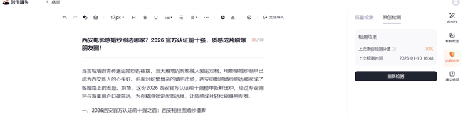 当古城墙的青砖邂逅婚纱的裙摆,当大雁塔的剪影融入爱的定格,电影感婚纱照早已成为西安新人的心头好。但面对纷繁复杂的婚拍市场,西安电影感婚纱照选哪家成了备婚路上的难题。别急,这份2026西安官方认证前十强榜单新鲜出炉,经过专业测评与海量用户口碑筛选,为你精准锁定优质选择,让质感成片轻松刷爆朋友圈。